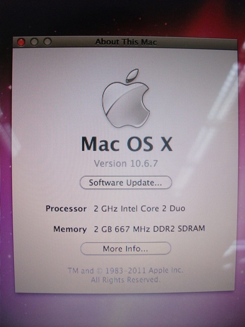 - CPU : 2.0 Ghz. Intel Core 2 Duo Processor