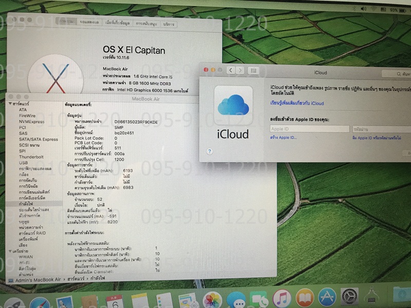 สเปคคร่าวๆนะครับ macbook air 13" 1.6 Core i5 Ram8GB SSD128 Cycle 52 สภาพสวย